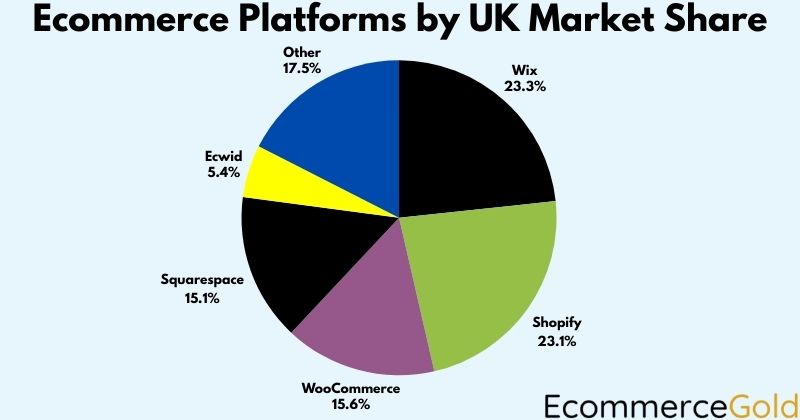 The second most popular ecommerce platform is Wix Store, which has a 17.8% market share, followed by WooCommerce in third with a 13.9% market share and below is a breakdown of the top 10 most popular ecommerce platforms: